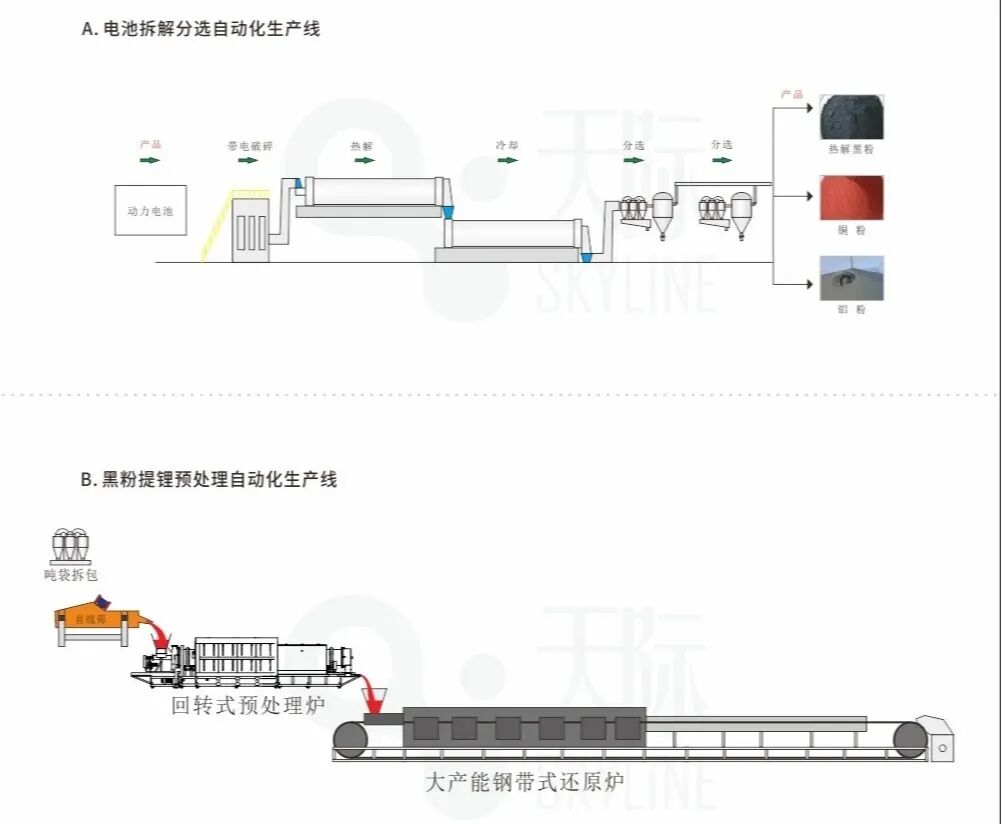 湖南天际智慧具有电池拆解分选+黑粉提锂自动化生产线,打造电池回收“黄金搭档”。